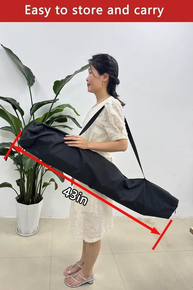 Easy to carryComes with a shoulder strap.The carrier measures only 43 in * 4 in * 5 in.Stable tripod made of metal frame with military-standard X-type support, through 4 spring pull rods and 2.5mm thickened joints. Telescopic main pole, height adjustable (4.3-5.5 feet).Bring you and your family a wonderful movie visual feast outdoors.