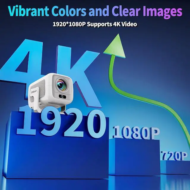 True 1980x1080 Resolution with 4K Support- Equipped with true 1920x1080 Full HD resolution and 4K Ultra HD video decoding, the Coolid projector features advanced LED technology, 1400 lumens of brightness, and a contrast ratio of 10,000:1. Whether you're watching a movie, TV show, or playing a video game, it delivers an immersive visual feast. It brings a cinema-like experience to your home.