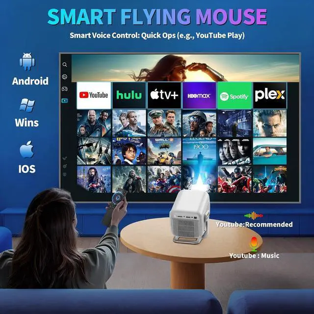 Built-in App Smart ProjectorThe Coolid projector runs on the Android 11 operating system with 1GB RAM and 8GB storage, ensuring smooth performance and user-friendly operation. It supports both wireless mouse and remote control for added convenience. The built-in Android TV OS allows direct access to millions of videos, including Netfilx and YouTube, without the need for a TV stick. Create your own private home theater with ease.