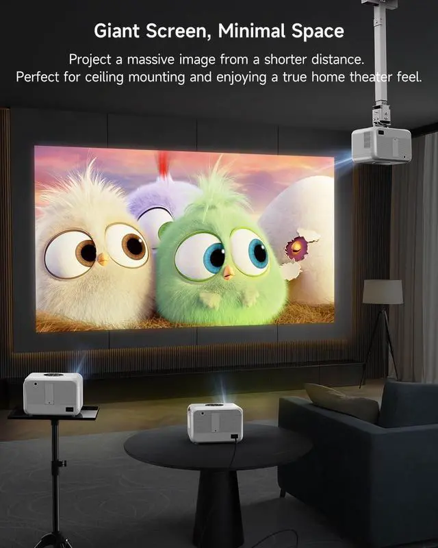 Vibrant 4K Clarity in a Portable FrameExperience stunning 4K HDR detail and rich colors on a big screen. This portable 4K projector is your perfect companion for movie nights, easily transforming any dim room or evening outdoor space into a personal home theater.