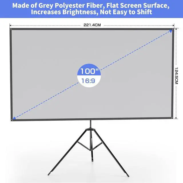 Projector Screen with Stand: WASJOYE Projector Screen with Stand has 100 inch viewing area, 16:9 widescreen aspect ratio, 160° panoramic viewing angle, compatible with most projectors