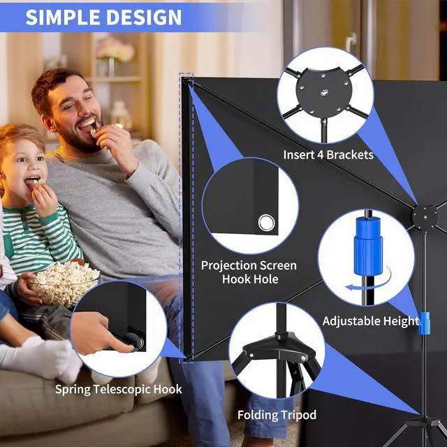 Multi Scene Use: The portable projector screen with stand meets a variety of usage scenarios. You can turn any place into a home theater to enjoy movie, sporting event, game and office presentations