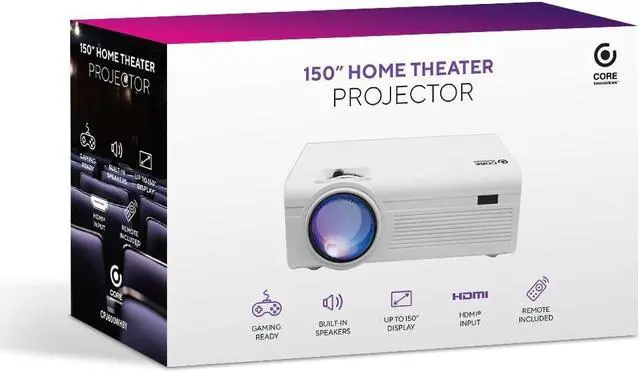 Connections: VGA / 2 HDMI inputs / USB input (up to 1000GB) / Micro SD card / 3.5mm headphone jack / AV IN / DC IN Built in speakers Image correction function Contrast ratio: 300:1 Projection size: 32" - 150"