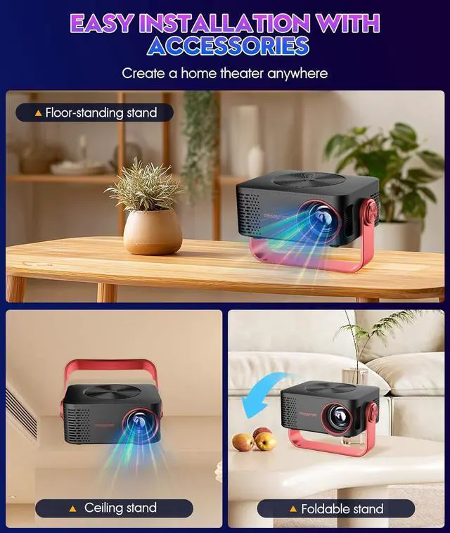 Ultra-Thin, Lightweight Design for On-the-Go Use: At only 41mm thin and weighing just [add weight if available], this projector is designed for portability. The built-in handle makes it easy to carryperfect for outdoor movie nights, camping trips, or moving between rooms without hassle.