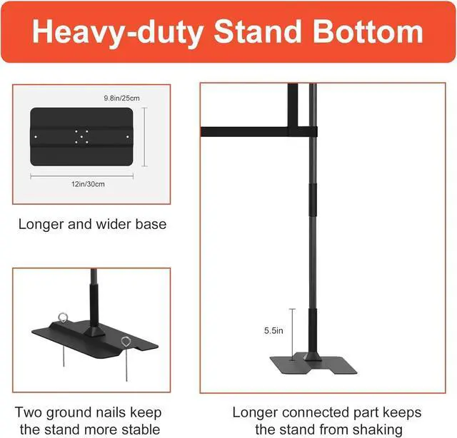 VERSATILE USE FOR INDOOR AND OUTDOOR EVENTSWith its compact and practical design, the feet of the stand can be easily tucked under rugs or furniture without taking up much space indoors. Outdoors, it's durable enough for use during camping trips, backyard movie nights, commercial events, or even drive-in theaters, ensuring endless entertainment possibilities.