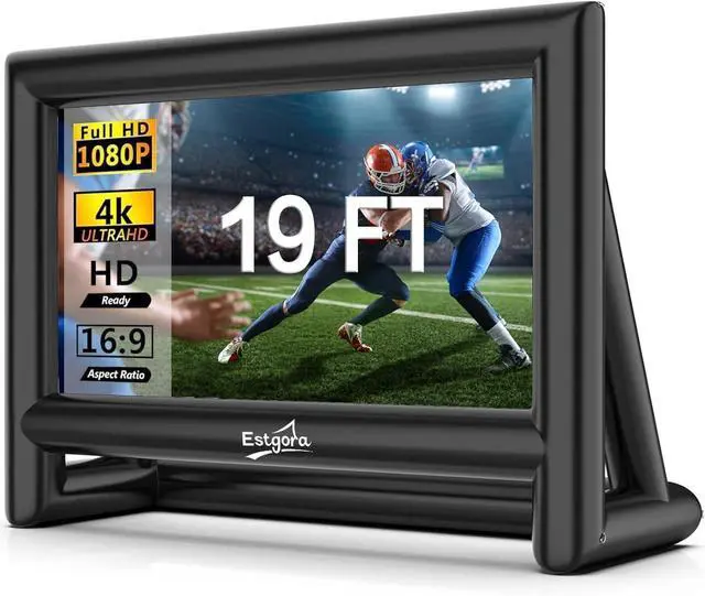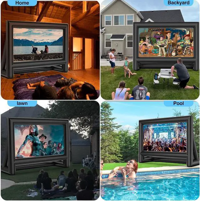 PORTABLE MOVIE THEATEREstgora large blow up projector screen is ideal companion for your celebrations. You can host family gatherings, movie nights, birthday parties and more in your backyard or by the pool. And also hold party entertainment, watch ball games, music festivals and other events at the park or beach. The big screen adds fun and excitement to your event, giving the attending partners a more unique experience and atmosphere.
