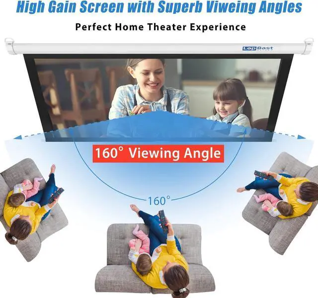 Visual Enjoyment The matte process of the screen makes the light reflected evenly and resists the interference of ambient light. A gain of 1.2 provides a brighter image. 82 inch, 160° panoramic viewing angle and 16:9 field of view, let you and your family enjoy a high-quality movie viewing experience. Screen supports 1080p, 4K and Full HD images.