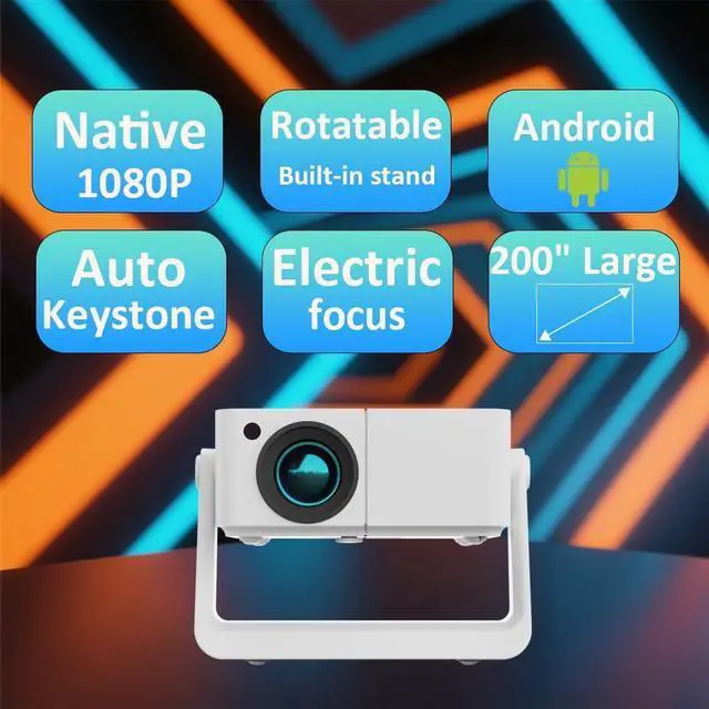 Smart Rotation Design: Innovative 360-degree adjustability with built-in stand enables flexible positioning and multi-angle adjustment for optimal projection setup.