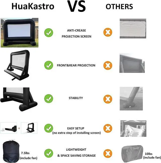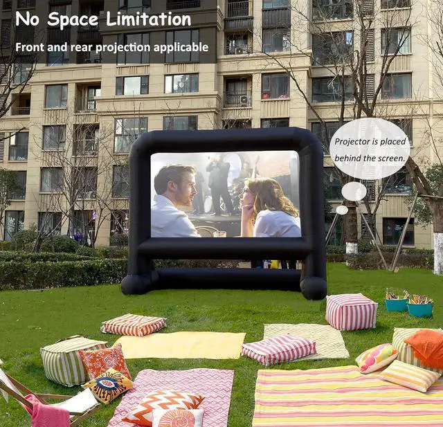Quick & Simple Solution for Outdoor Projection: Set up in no time with just the included air blowerno need to attach a separate white screen. The one-piece design of the white screen and black frame makes setup easier, perfect for watching movies or sports in your backyard with minimal effort.