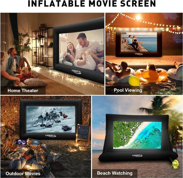 BIGGER SCREEN,BETTER EXPERIENCEOur inflatable projector screen gives you more to watch! While most screens are 4.9ft x 9ft. OURS is a spacious 5.84ft x10.36ft, offering a larger more immersive viewing experience.