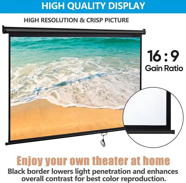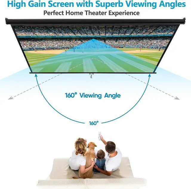 160° Wide Viewing Angle: Offering a wide viewing angle of up to 160° with High quality matte white large surface, you and your family can choose a cozy seat and posture to enjoy your movie night without crowding in front of the screen.