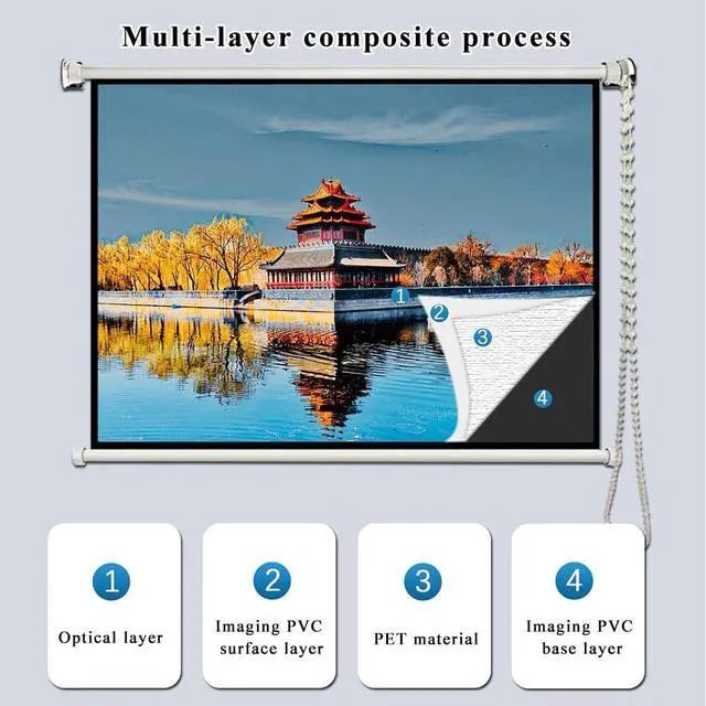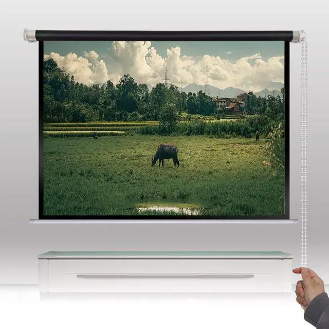 Manual Projection Screen: Pull the crystal cord to naturally open the screen when in use, allowing you to adjust the height freely. After use, it can be easily rolled up, saving time and effort
