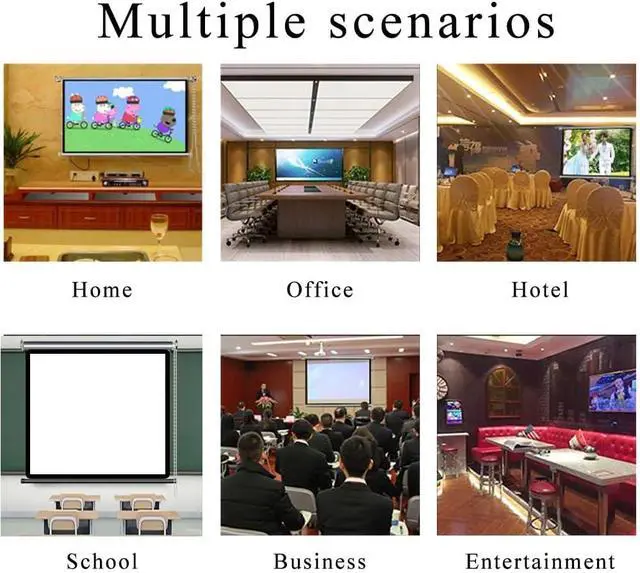 Versatile Usage: The projection screen is suitable for various settings, including home theaters, classroom presentations, work reports, hotel weddings, business meetings, leisure entertainment, and outdoor terraces