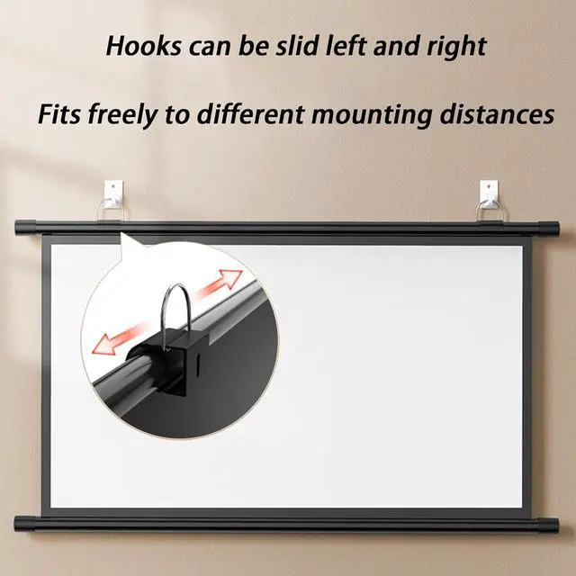[Roll Up Screen] Home theater screen is easy to assemble. Simply hang the projection screen with sticky hooks. It can be put away when not in use and will not affect the atmosphere of the room.