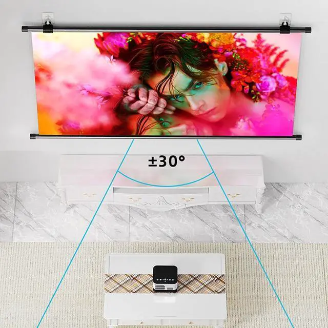 High-definition wall-mounted anti-light screen, portable and no installation required, 4K cinema-level picture quality/No drilling installation required/direct projection during the day