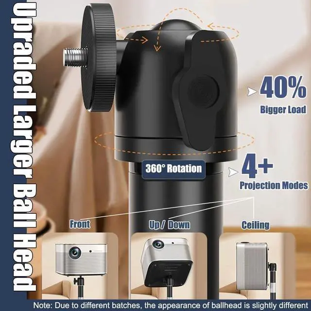 FLEXIBLE ADJUSTMENT: Projector floor stand comes with upgraded larger ball head, 360° horizontal Rotation and 90° tilt to keep a fixed angle your need well, even upward projection on your ceiling to enjoy movie lying on bed