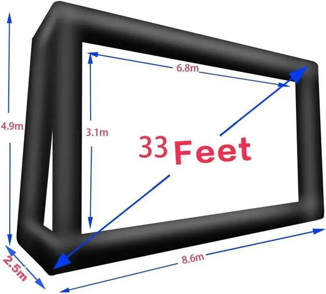 EFFORTLESSLY PORTABLE : this amazing, huge 33 feet outdoor movie screen comes with a convenient storage bag that allows you to carry your inflatable movie screen wherever you want. This portable projector screen is lightweight enough to take it with you in every relevant occasion for impressive projections.
