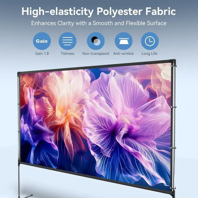 High Elasticity Polyester Screen Crisp & Clear Every Time Made from high-elasticity polyester fabric, this screen delivers superior image clarity and vibrant color with a smooth, flexible surface that eliminates wrinkles and waves.