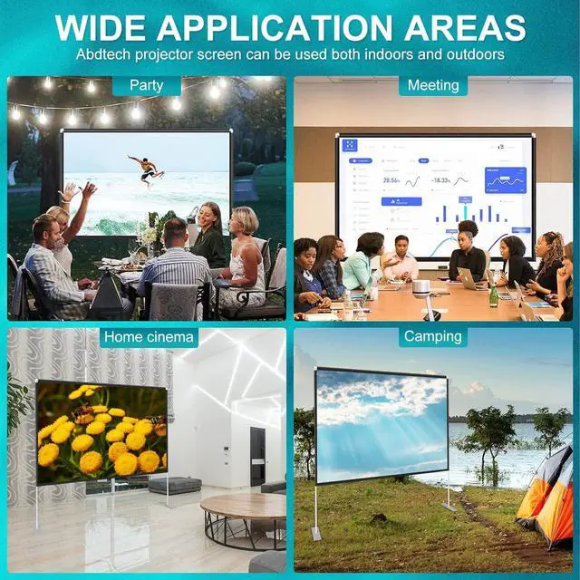 Wrinkle Free Outdoor Movie ScreenWith 100-inch Diagonal, 160° Wide Viewing Angle, Gain 1.1 and 16:9 aspect ratio, 100inch outdoor projector screen with stand has made of high-quality polyester & spandex material , thicker than other average screens. Projector screen with stand greatly offers sharper and brighter image quality. Screen has soft and smooth touch feeling,which make you more pleasurenot easy to be yellow, Meanwhile, supporting front and rear projection.