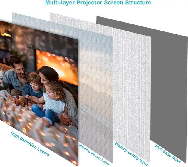 Premium PVC Matte White Screen: 160-degree large viewing angle provides a wide viewing area; 1.1 gain matte white screen is yellow-staining-free, wrinkle-free, and offers outstanding image reproduction.