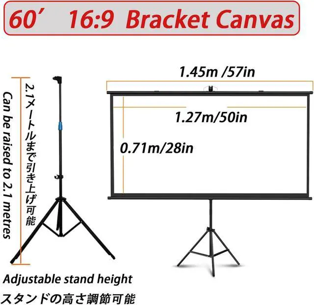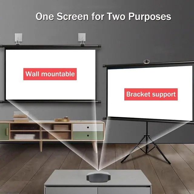 60/72 Inch Projector Screen: The projector screen tripod with stand is made of solid metal and has a triangular structure, which keeps the entire projector screen structure stable, strong, flexible, and the height can be adjusted freely.