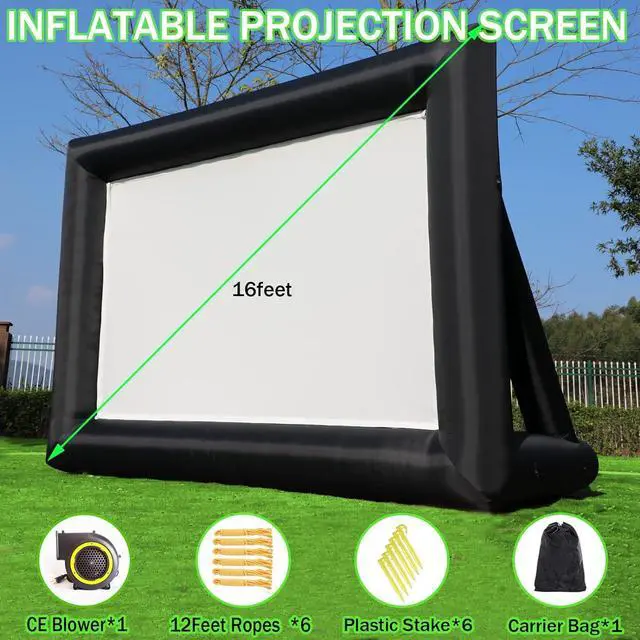 Perfect Size for Outdoor Fun--16ft. Inflatable movie screen is a must-have equipment for outdoor activities! Set up your own nightly movie in your backyard or by the pool and relax with a classic or a recent blockbuster. On the other hand, you can use this large outdoor inflatable projector screen to watch music videos and throw parties with friends.