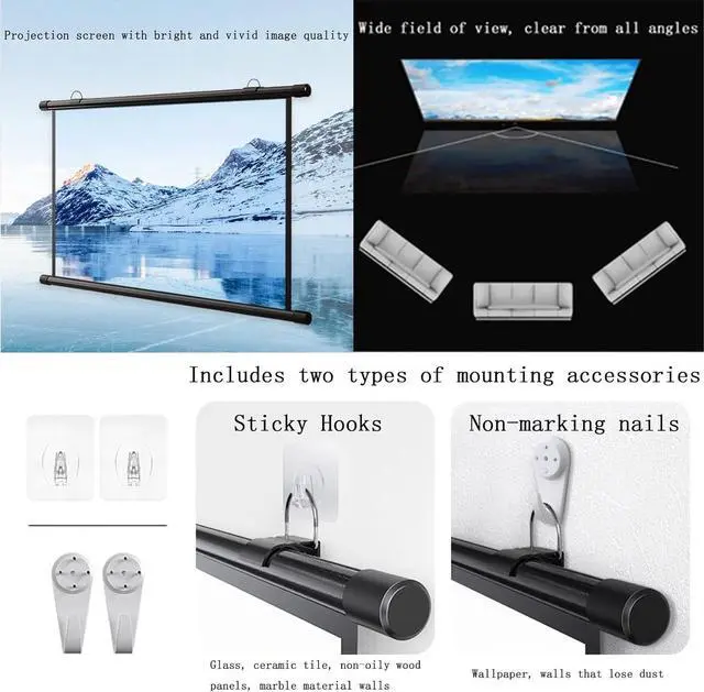 The projection screen is made of soft, thick white fiberglass, which provides clear images and prevents light reflection, bringing you and your family a high-definition visual experience.