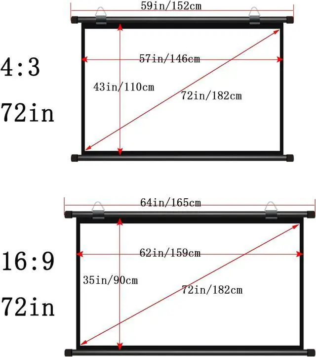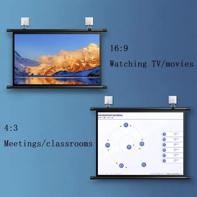 The screen has two ratios: 16:9 and 4:3. The 16:9 ratio is suitable for home theaters, games, KTV, and the 4:3 ratio is suitable for workplaces such as business, offices, schools, and educational PPT.