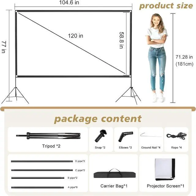 Portability and Convenience: Lightweight and compact, this screen can be easily carried in its matching bag, making it perfect for home, camping, and events.