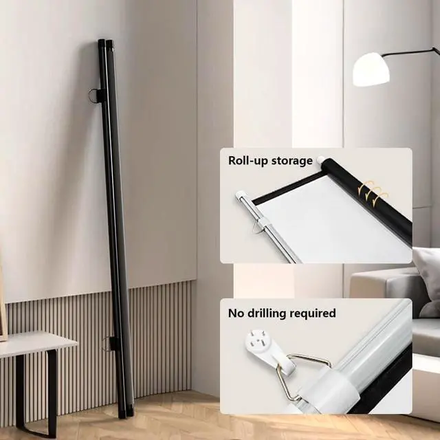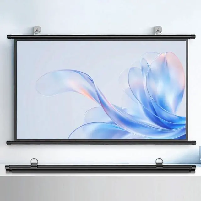 Manually retractable projector screen, portable HD projection screen with lightweight design for easy carrying and installation. Suitable for indoor and outdoor settings such as home theaters, classrooms, offices, weddings, and conference presentations. Easy to roll up to save space.