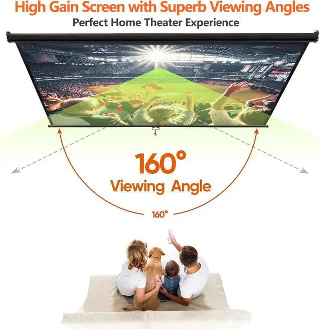 Versatile Viewing Angles :160 degree viewing angle ensures that everyone in the room enjoys a clear and vibrant picture, no matter where they are seated.The screen's black border enhances contrast and prevents light penetration from the edges