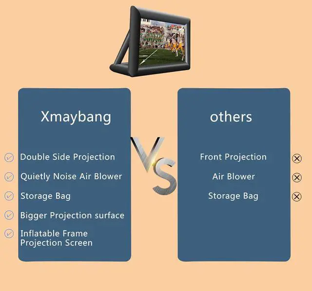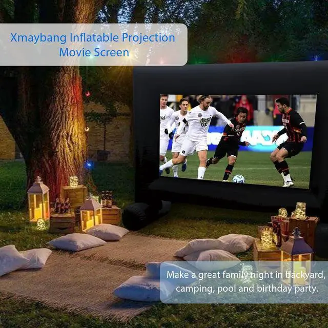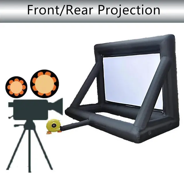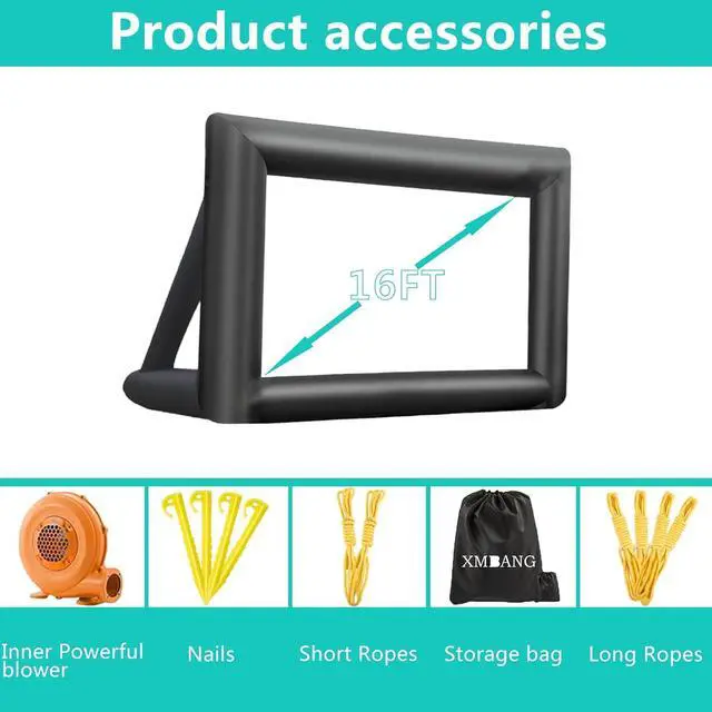 Fast inflatable and easy to carryThe high power blower fully inflates in about 2-3 minutes,Low noise.No screws or tools required,This oversized inflatable projector screen comes with a large everyday storage bag.so that you can take .