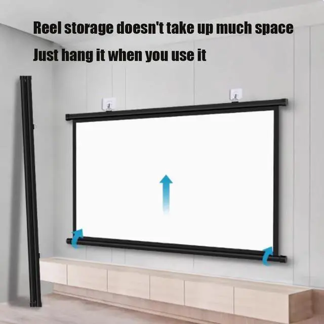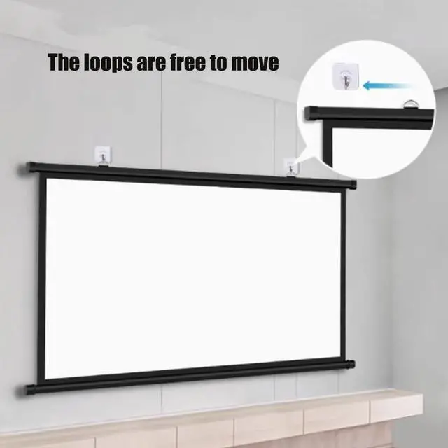 Easy to install: The hanging ring above the projection screen can be moved, and it is necessary to ensure that the hanging ring is in the card slot before moving, and can be freely matched with hooks at different distances, and can be used with non-marking nails or hooks