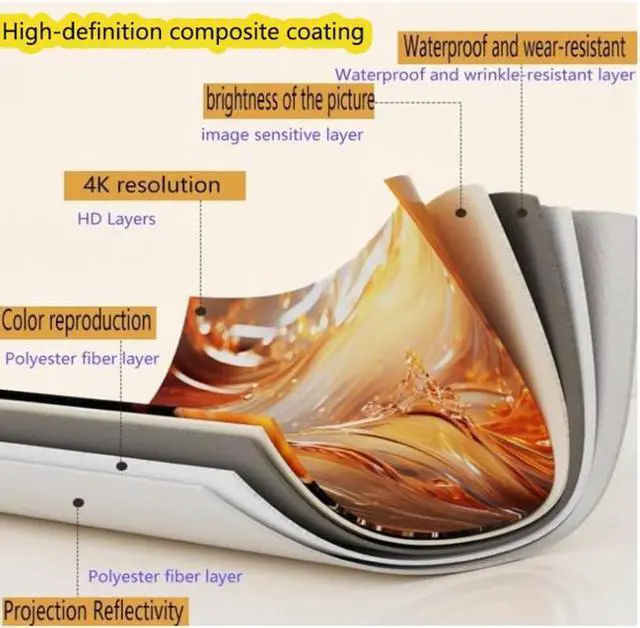 High-quality materials: The projection screen is made of white fiberglass, which has a good gain effect, a clear picture, bright colors, strong durability, and is suitable for long-term use