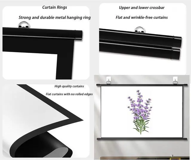 HD Projection Screen: This projection screen supports 3D, 4K and Full HD images, providing bright images. Effectively improve the brightness coefficient of the picture, resist environmental interference, and provide a richer picture.