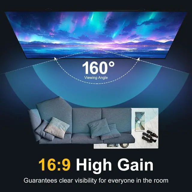 Exclusive Ambient Light Rejecting Technology: The 100 inch projector screen premium PET optical layer blocks 85% ambient light, delivering cinema-quality brightness even under indoor lighting. Perfect for daytime movie nights or office presentations without darkening rooms.