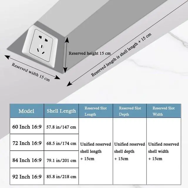Dimensions and aspect ratio: 60" diagonal, 16:9 screen size: 51.9" W x 29.5" H (132x75 cm) (for use with projectors with 2500+ lumens)