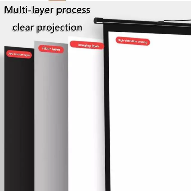 The projector screen material, four-layer structure, uniform thickness, smooth surface fiber structure, effectively prevent the curtain from wrinkling and deformation, and ensure that the screen is durable and smooth.