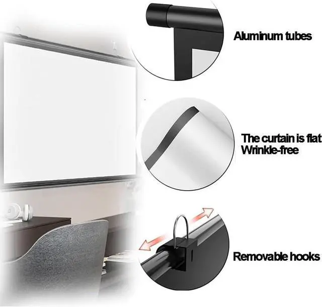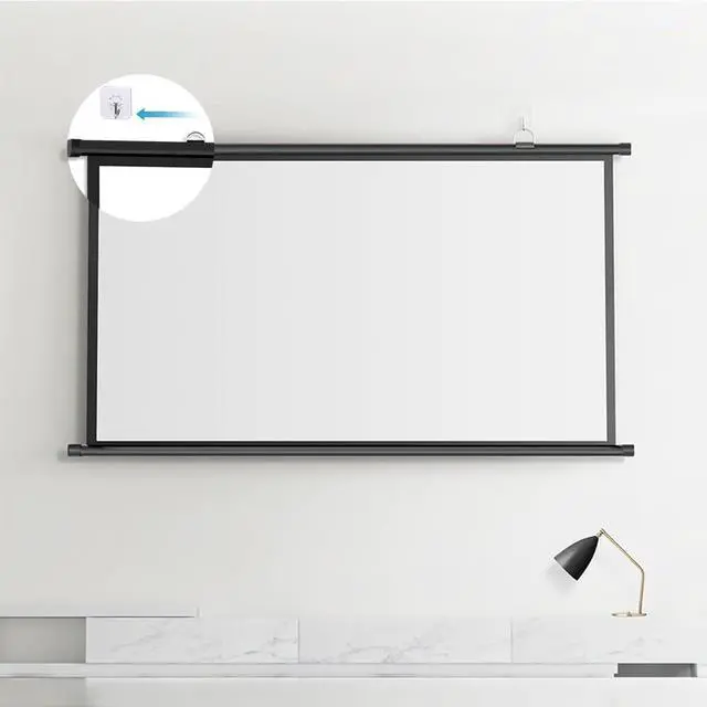 The manual projection screen is easy to install, the material is high-quality white fiberglass, and the surface is optically coated. The screen is flat and smooth, and the picture quality is clear and delicate, allowing you to have an immersive viewing effect.