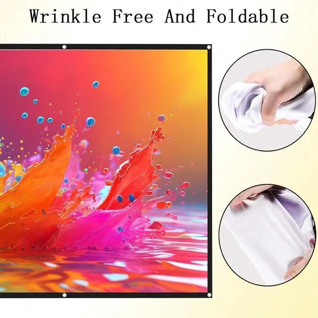 The projection screen is made of PVC, which can completely restore the clarity of the projected image, improve resolution and contrast, is foldable and portable, and will not leave creases no matter how it is folded.