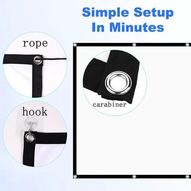 The outdoor movie screen comes with all the necessary tools and hooks for indoor wall installation; 2 ropes are enough for outdoor installation and can be installed in just 5 minutes.