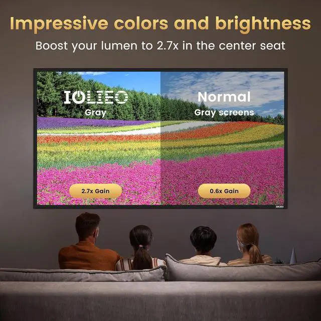 Brightness Boost and Limitation When viewed from center seats (within 4 seats), the brightness is significantly brighter than a normal gray screen. The gain of the center seats is up to 2.7X. For further seats, the screen may be darker than a normal gray screen. Most of the time, you can enjoy a brighter image, or use the brightness for a bigger screen!
