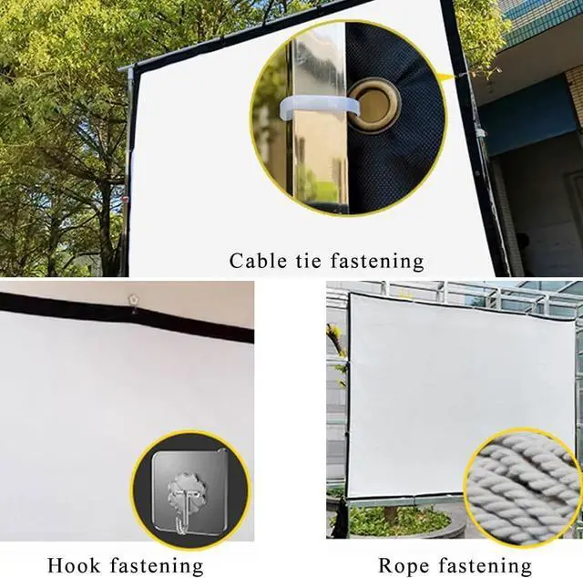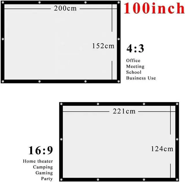 Dual aspect ratios and multiple sizes: Available in 4:3 and 16:9 aspect ratios, with 60, 72, 84, and 100-inch options, suitable for different needs; supports various installation methods such as wall mounting, strap fixing, hook hanging, and rope pulling