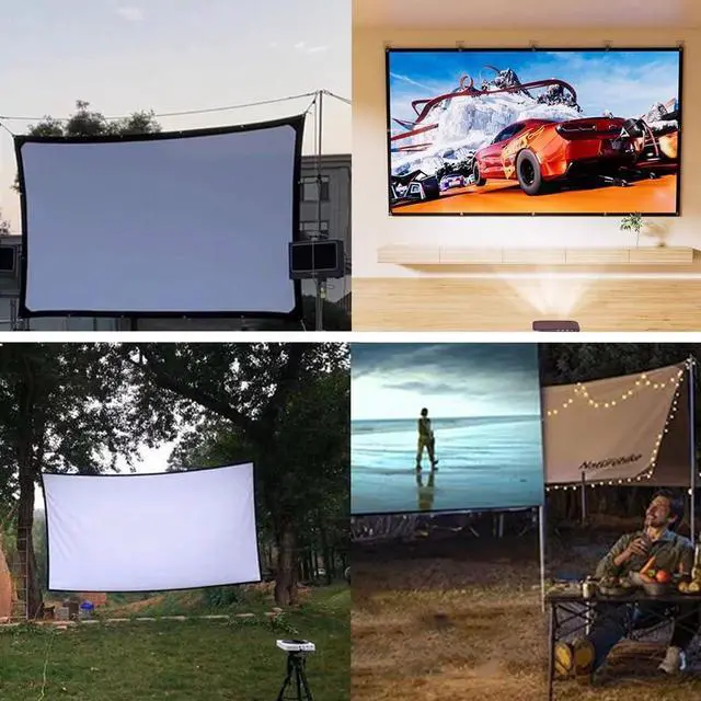 Suitable for multiple scenarios: This projection screen creates an immersive viewing space and can be flexibly used indoors (business meetings, home theaters, living rooms) and outdoors (camping, backyard parties) in various settings