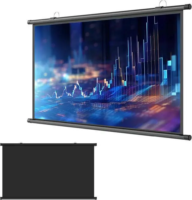 Not easy to shake: Portable Pull Down Projector Screen, The top and bottom adopt a crossbar design, which is durable and has strong load-bearing capacity. The curtain is not easy to shake or tilt during use. The hanging ring on the crossbar can be moved left and right, which is easy to install