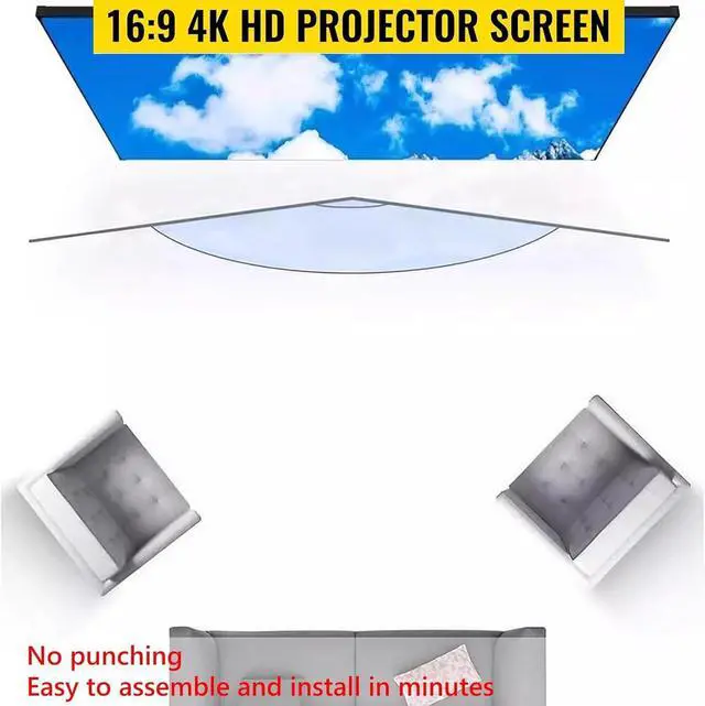 [Easy to Install] The projection screen is designed with a black bezel and hanging holes, and is usually hung on the wall or suspended from the ceiling.