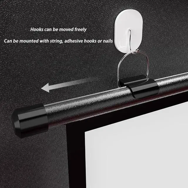 This small, portable and lightweight wall/ceiling projection screen pull-down structure comes with two top loops for hooking screws, nails so the screen can be easily mounted on the ceiling/wall.
