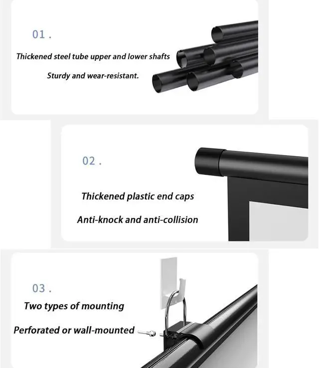 Projector screens are available in various sizes, 30/40/50/60/72 inches diagonal, screen aspect ratios 16:9 and 4:3 optional, with the best image and color reproduction for you Bring perfect visual enjoyment.