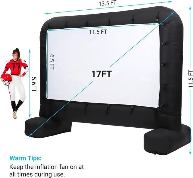 **Versatile Projection Options**: The 17Ft Inflatable Projector Screen supports both front and rear projection, providing a 160° large viewing angle ideal for any outdoor movie night or home theater experience.