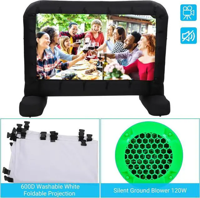 **Quick Setup and Stability**: Featuring a user-friendly design, this inflatable movie screen is easy to install with a quiet air blower, ensuring a sturdy and stable setup for all your parties and outdoor gatherings.